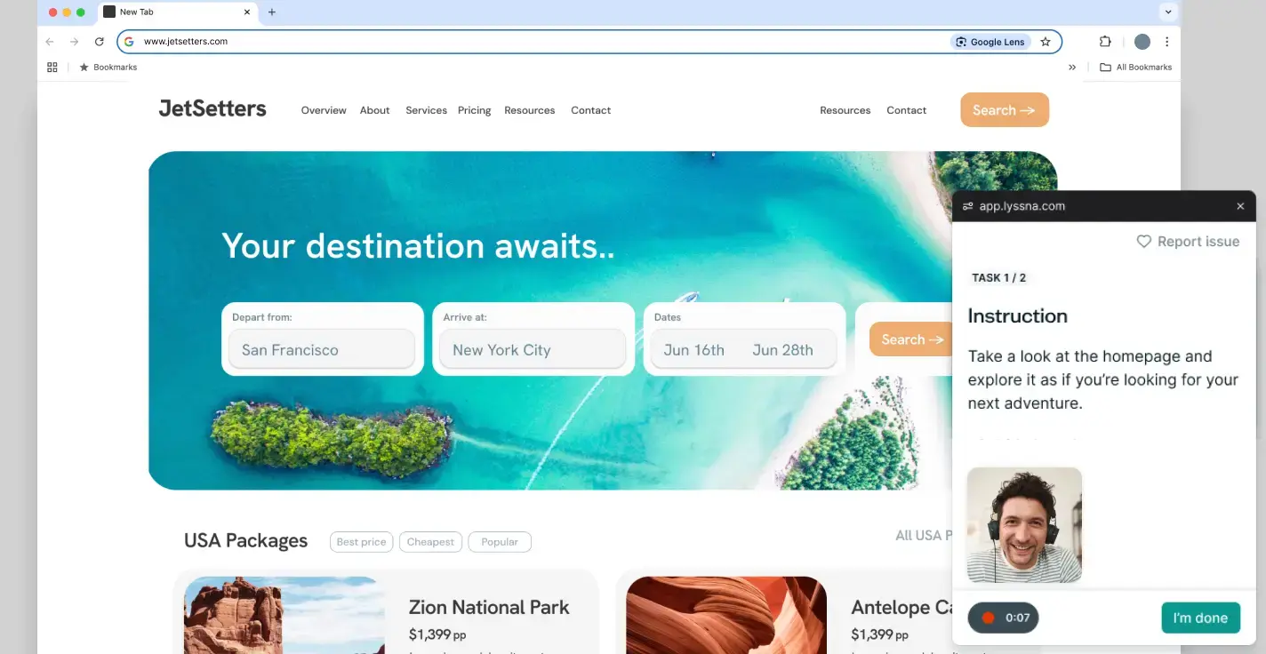 With live website testing, you can evaluate any live website, capture authentic user interactions, and gather both qualitative and quantitative data.